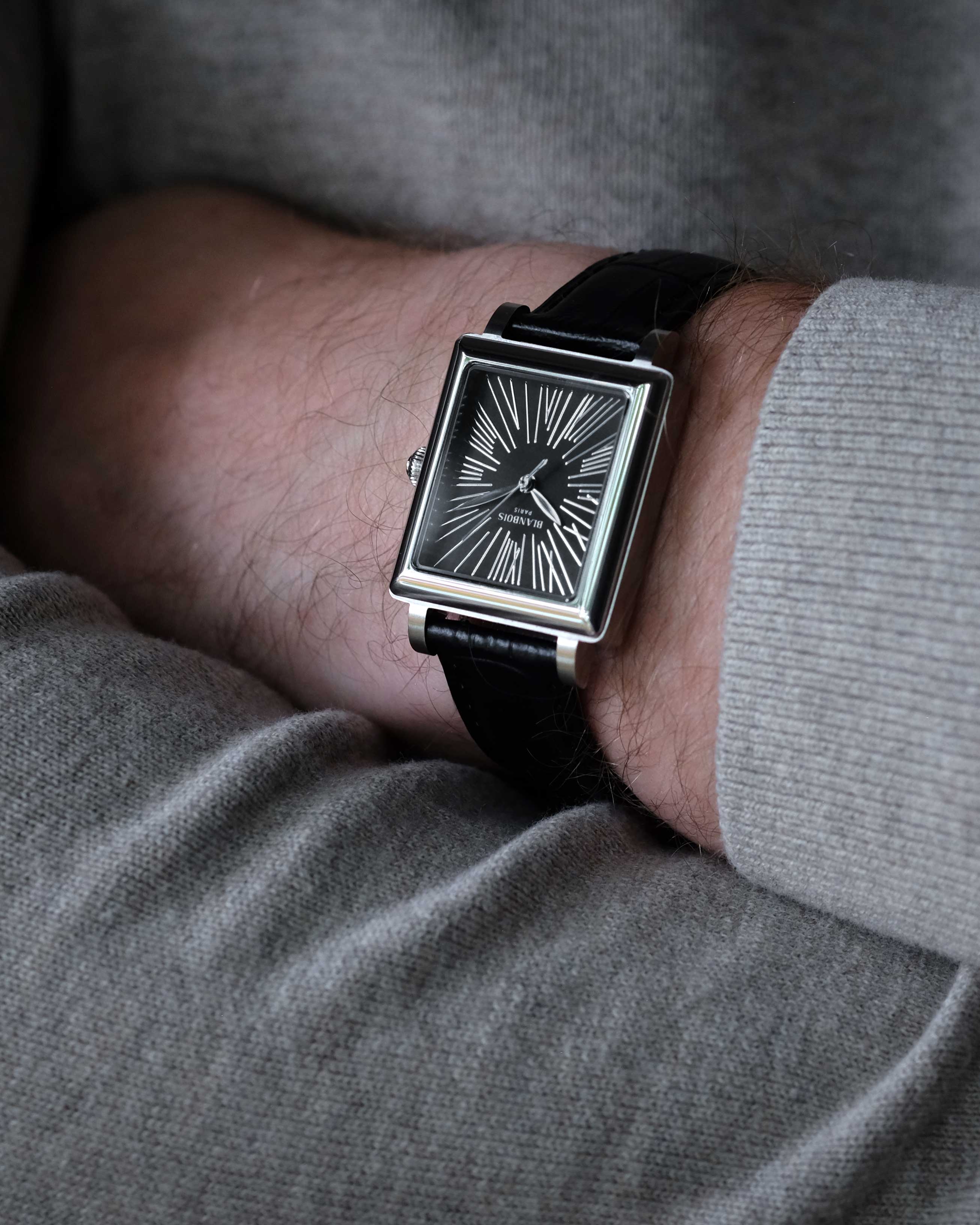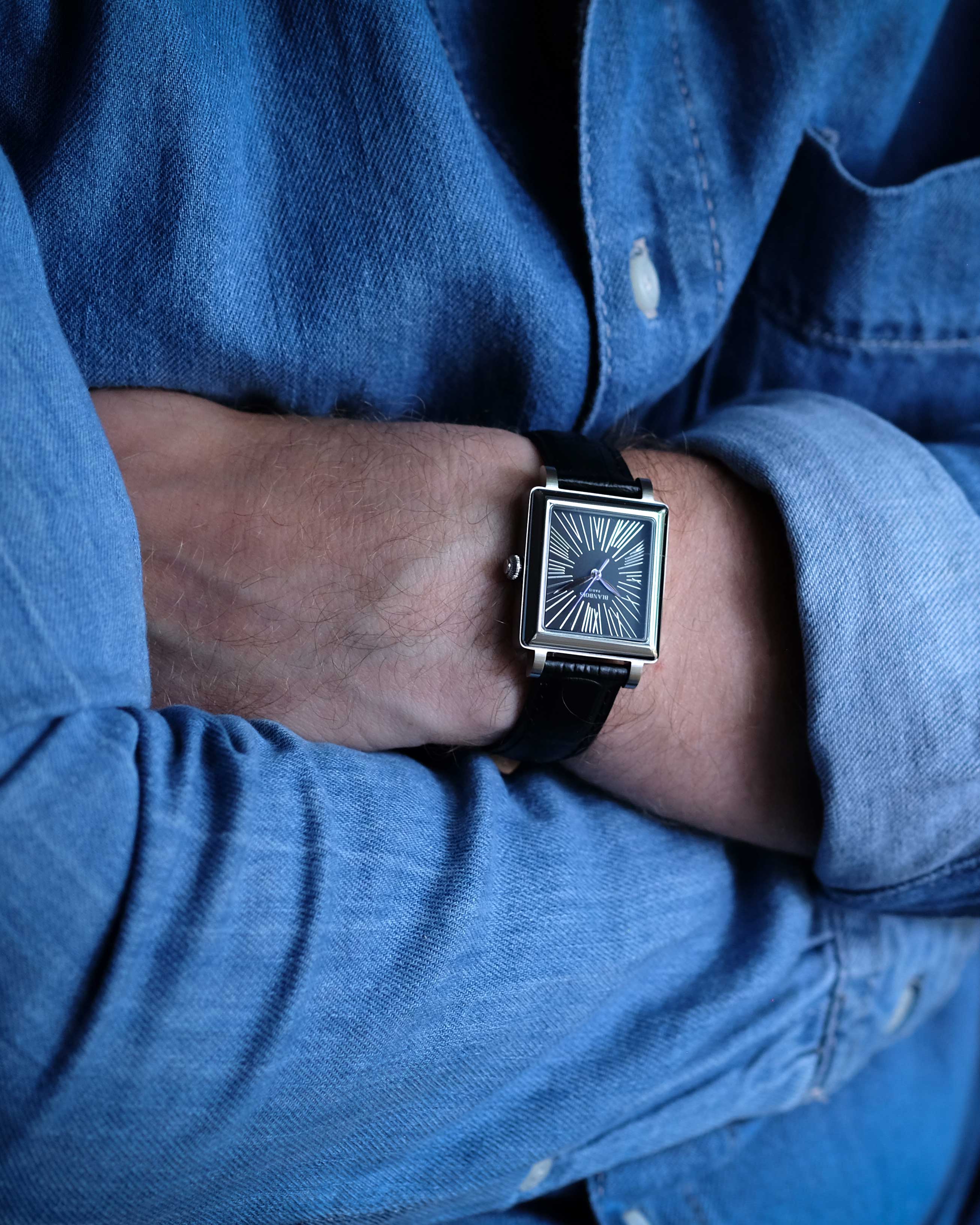 " The rectangular shape reminds me of watches from the 40s, but it doesn't feel like a reproduction. It's its own thing. The proportions work really well on the wrist, not too big or too small. "