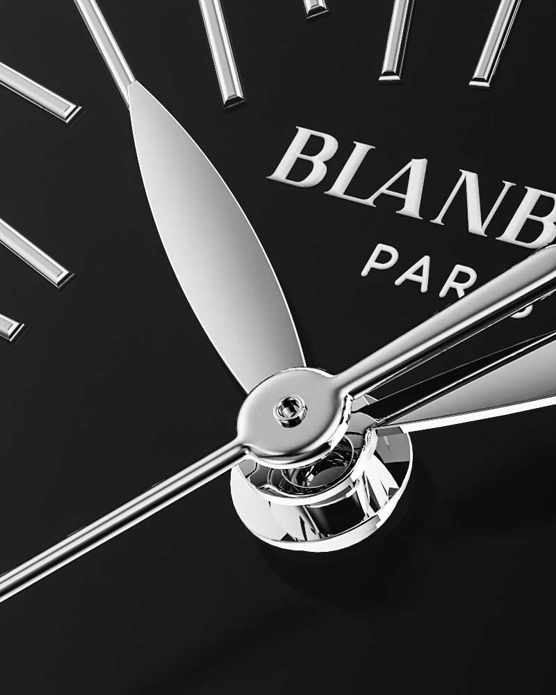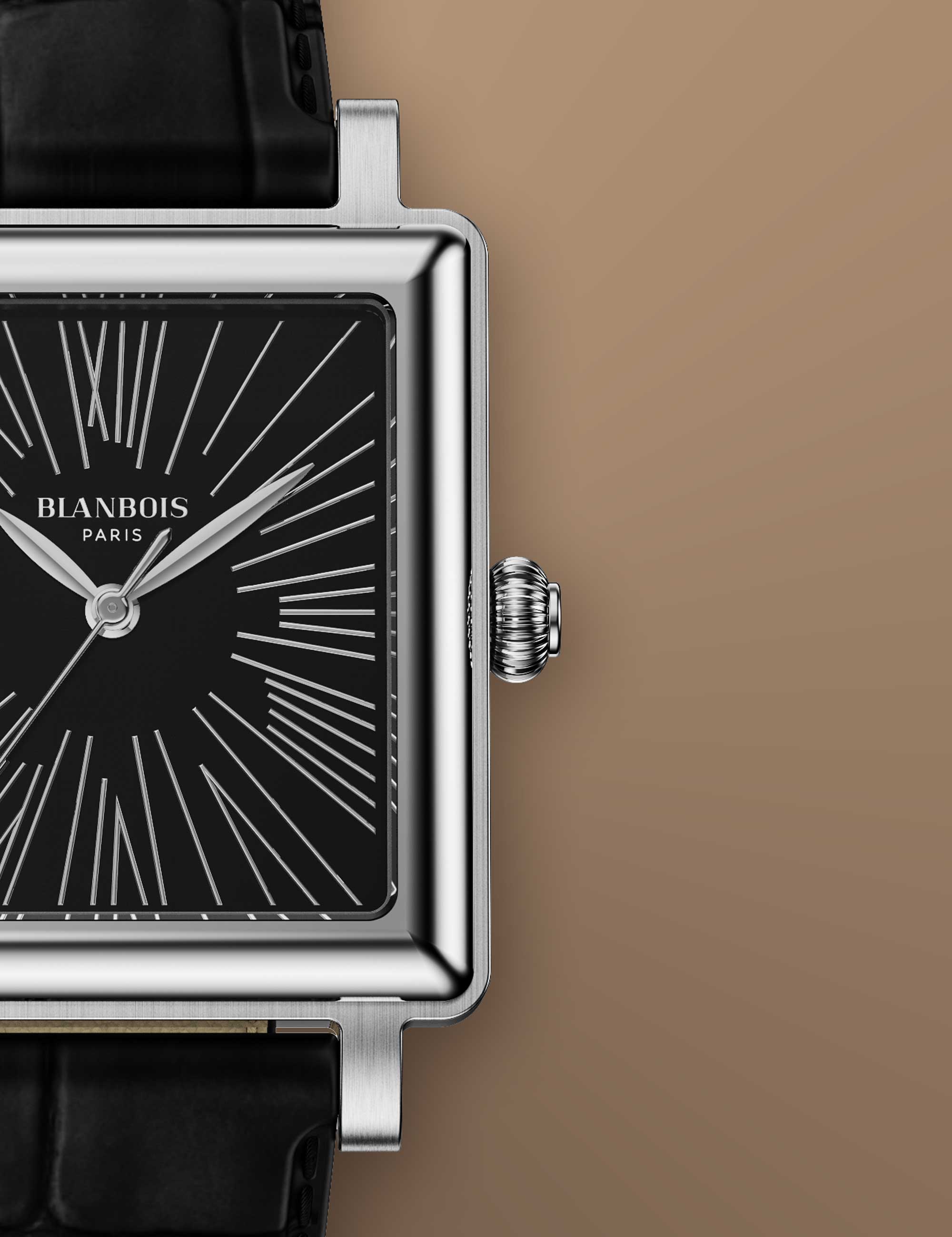 Each dial reveals a unique Roman numerals pattern originally developed by hand, its intricate mid-century geometry whispers of a French artistic lineage.